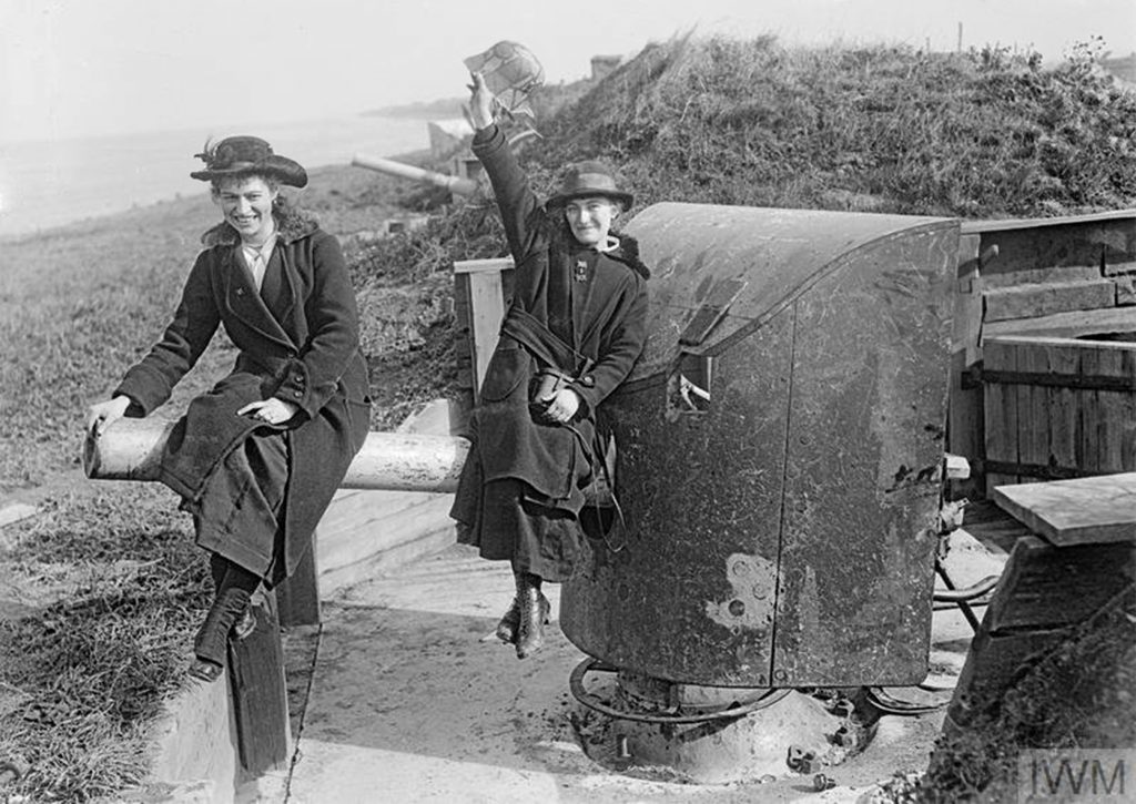 Photo : jeunes femmes flamandes sur les fortifications allemandes