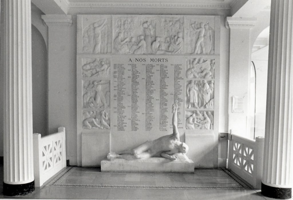 Monument aux morts de la guerre de 14-18 de Normale Sup rue d’Ulm où est inscrit Maxime David, promotion 1904, professeur à Chartres