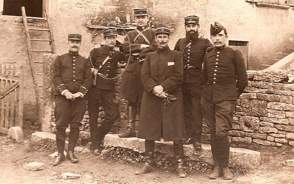 Photo : Fournier (dans le cercle) sous-lieutenant de réserve au 88ème RI lors de manœuvres avant-guerre.