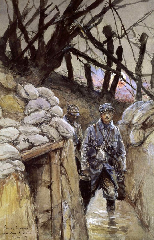 Le titre exact de la peinture est Notre-Dame-de-Lorette - 28 juin 1915. On y voit un poilu effectuant une corvée dans la tranchée. La représentation n’a rien d’épique. Elle montre simplement le quotidien des hommes.
