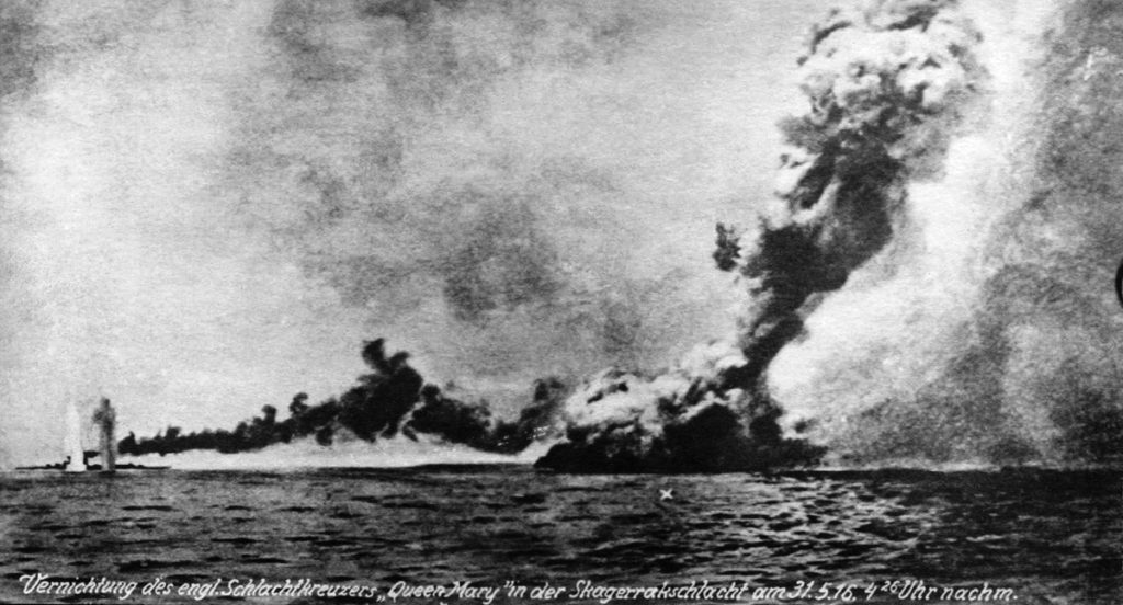 Photo allemande : L’explosion du cuirassé anglais Queen Mary