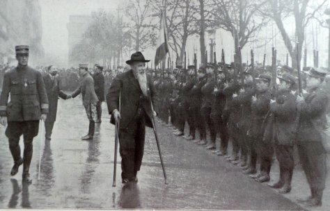 le général Ricciotti Garibaldi, fils du héros de l’indépendance italienne, passe en revue avec son fils Pepino la Légion garibaldienne sur les Champs-Élysées (source L’Illustration)