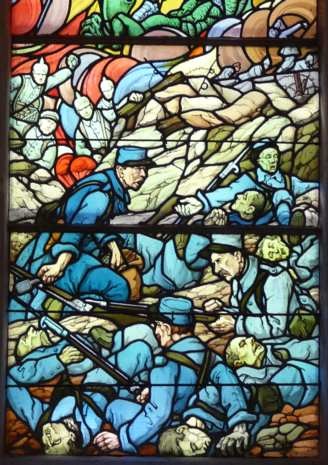 Détail du 3ème vitrail de l’église de Marbotte : Debout les morts !